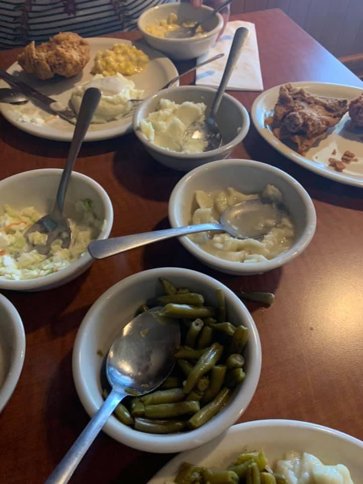 It is time for the holy grail of Southern Illinois. The All you can eat chicken dinner at Giant City Lodge. Today, there is no menu. They ask you for your drink order, then they start piling bowls and plates of green beans, potatoes, dinner rolls, dumplings, corn, fried chicken, and creamy coleslaw on your plate. They will replenish all the items when your bowls and plates are looking bare. Its a cool atmosphere. Amazing food, and an insane value. Its the perfect Sunday lunch. Im gonna ask you to save room for a quick dessert